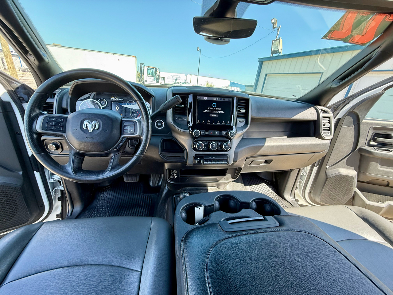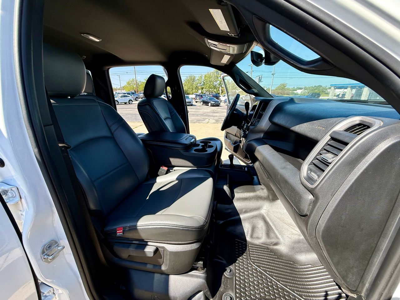 On the exterior, this RAM means business with its black front bumper, side windows trim, and front windshield trim. The cab clearance lights add an extra touch of ruggedness, while the exterior mirrors with clearance lights not only look sharp but also provide added visibility.